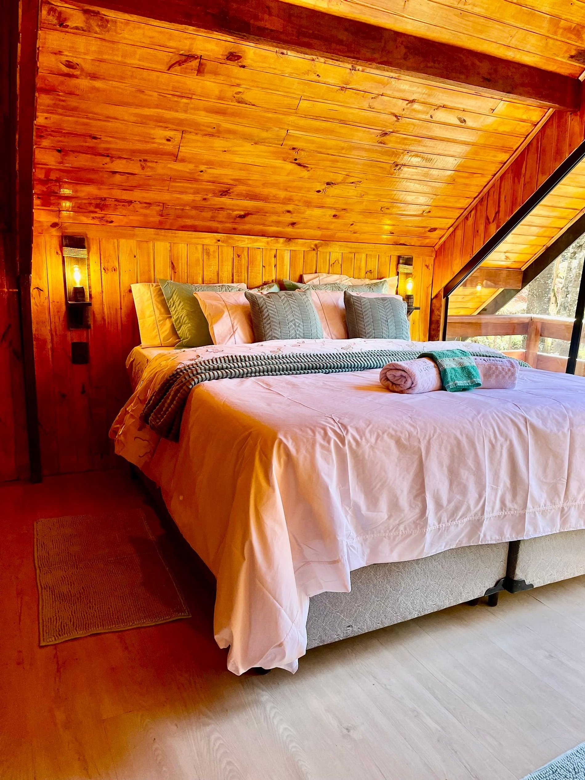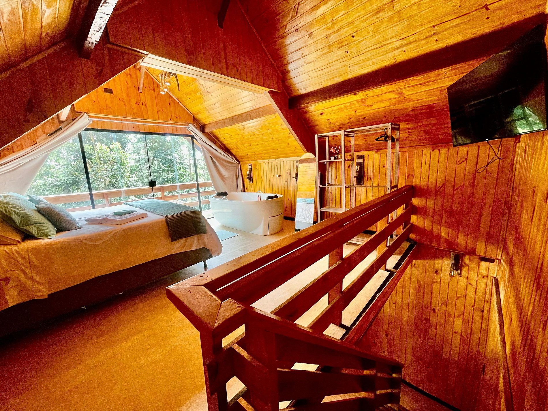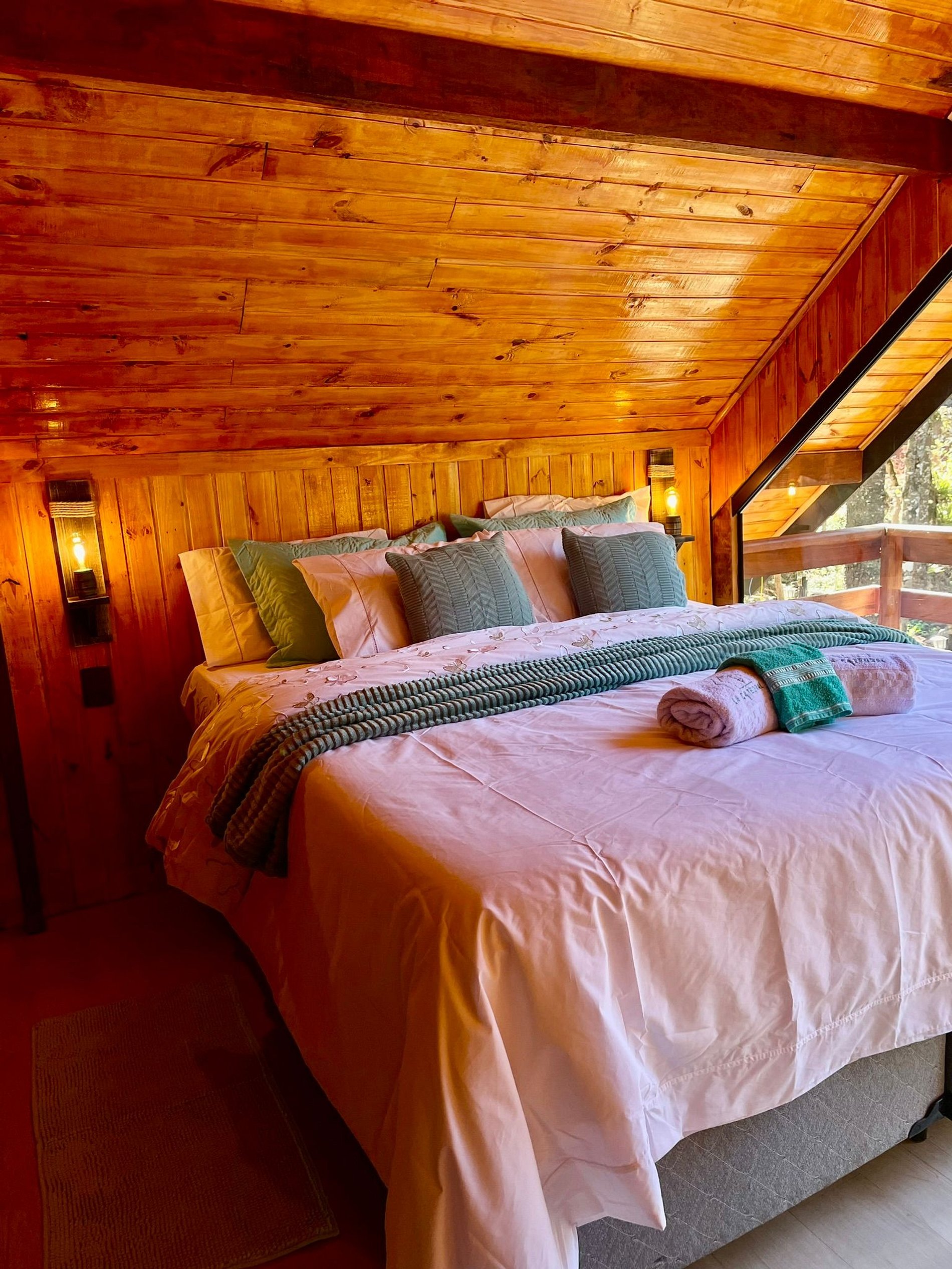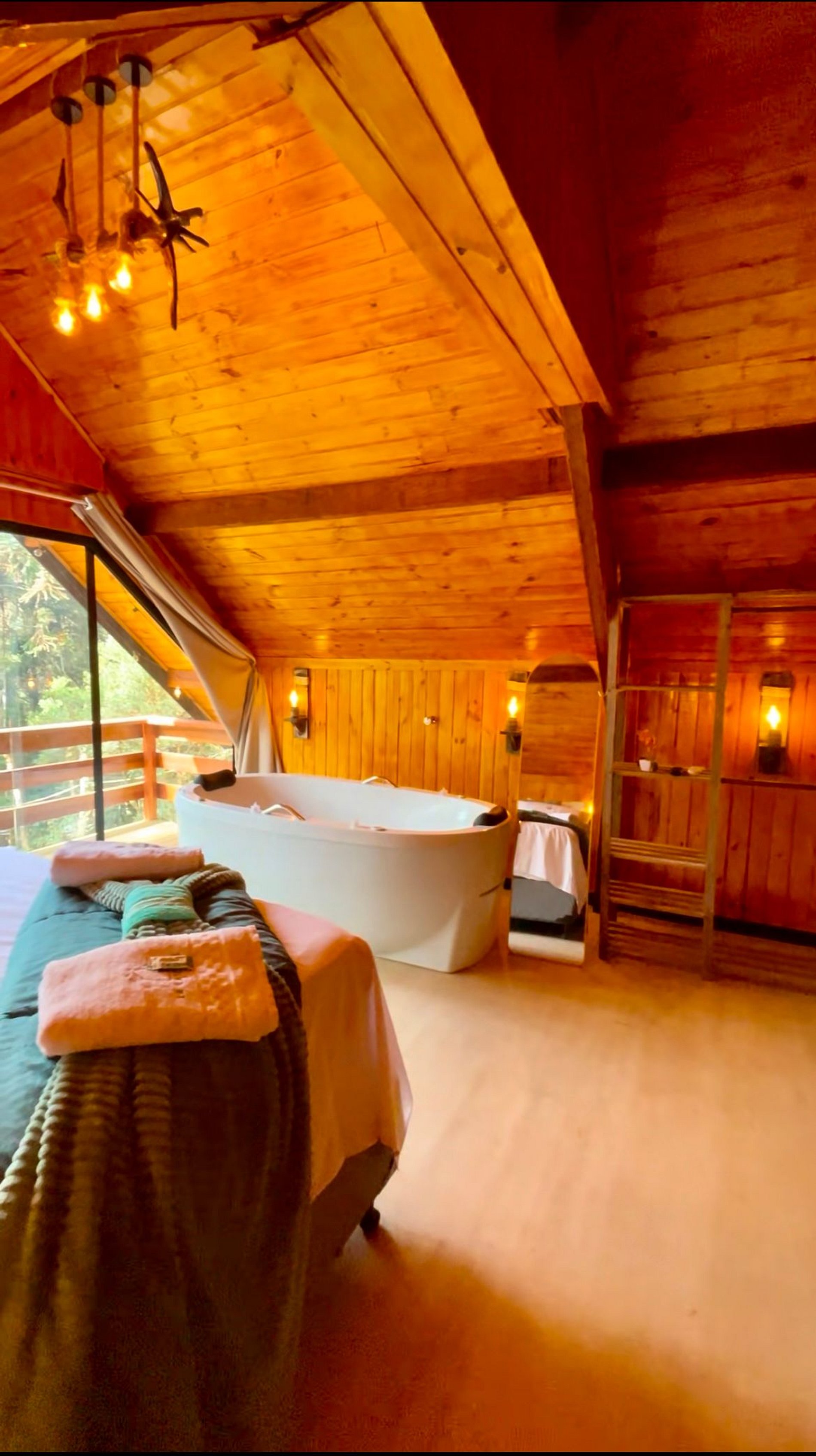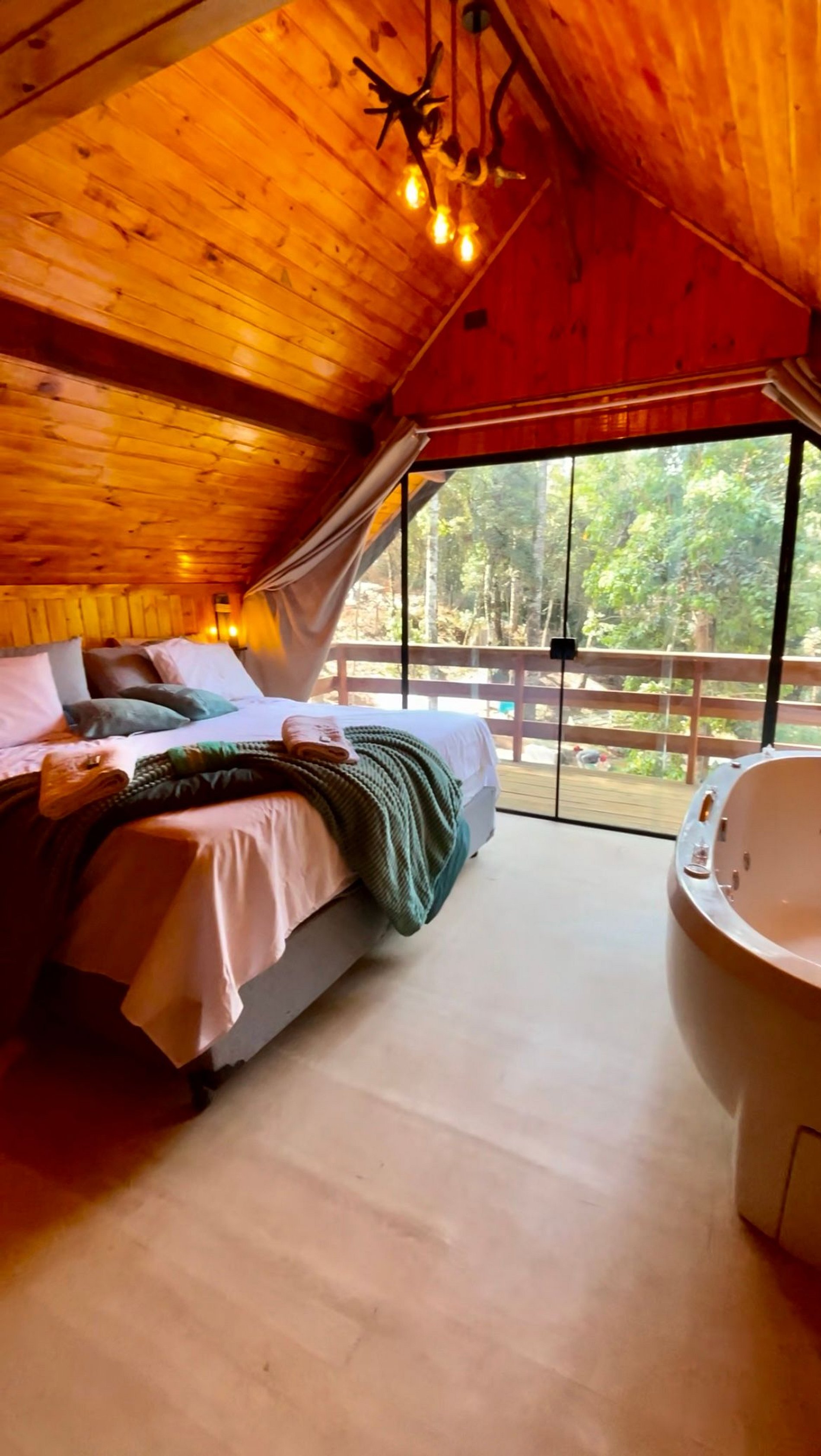 Imagine-se entrando em um chalé de madeira rústico, cuidadosamente decorado para criar uma atmosfera acolhedora e elegante. Repleto de detalhes pensados no seu conforto, o chalé oferece uma banheira de hidromassagem com cromoterapia – perfeita para relaxar após um dia de passeios –, cozinha completa para preparar suas refeições favoritas e dois ambientes espaçosos para garantir o melhor aproveitamento do espaço. O fogo de chão externo é um dos nossos maiores atrativos, ideal para curtir um bom vinho sob o céu estrelado de Campos do Jordão.