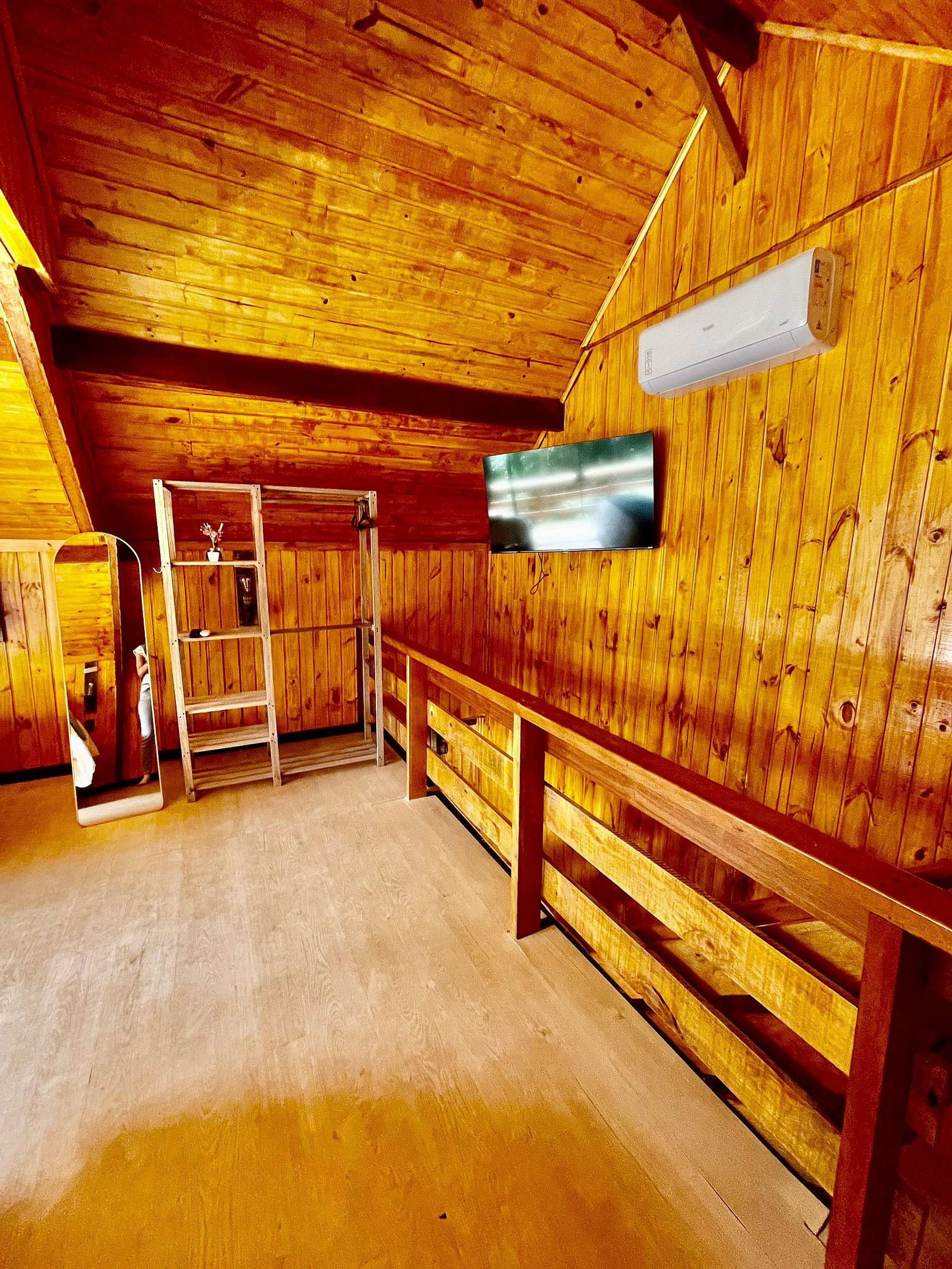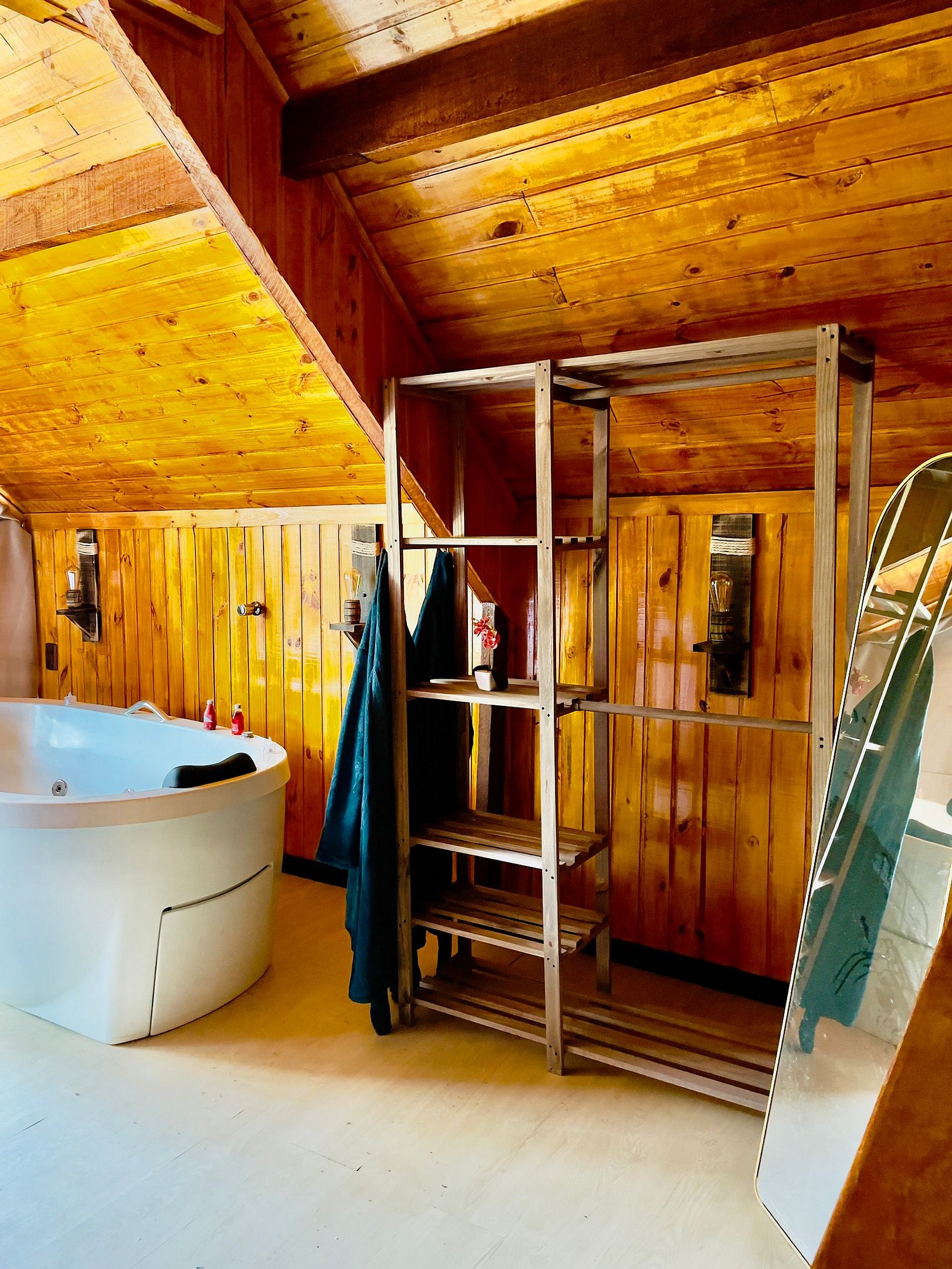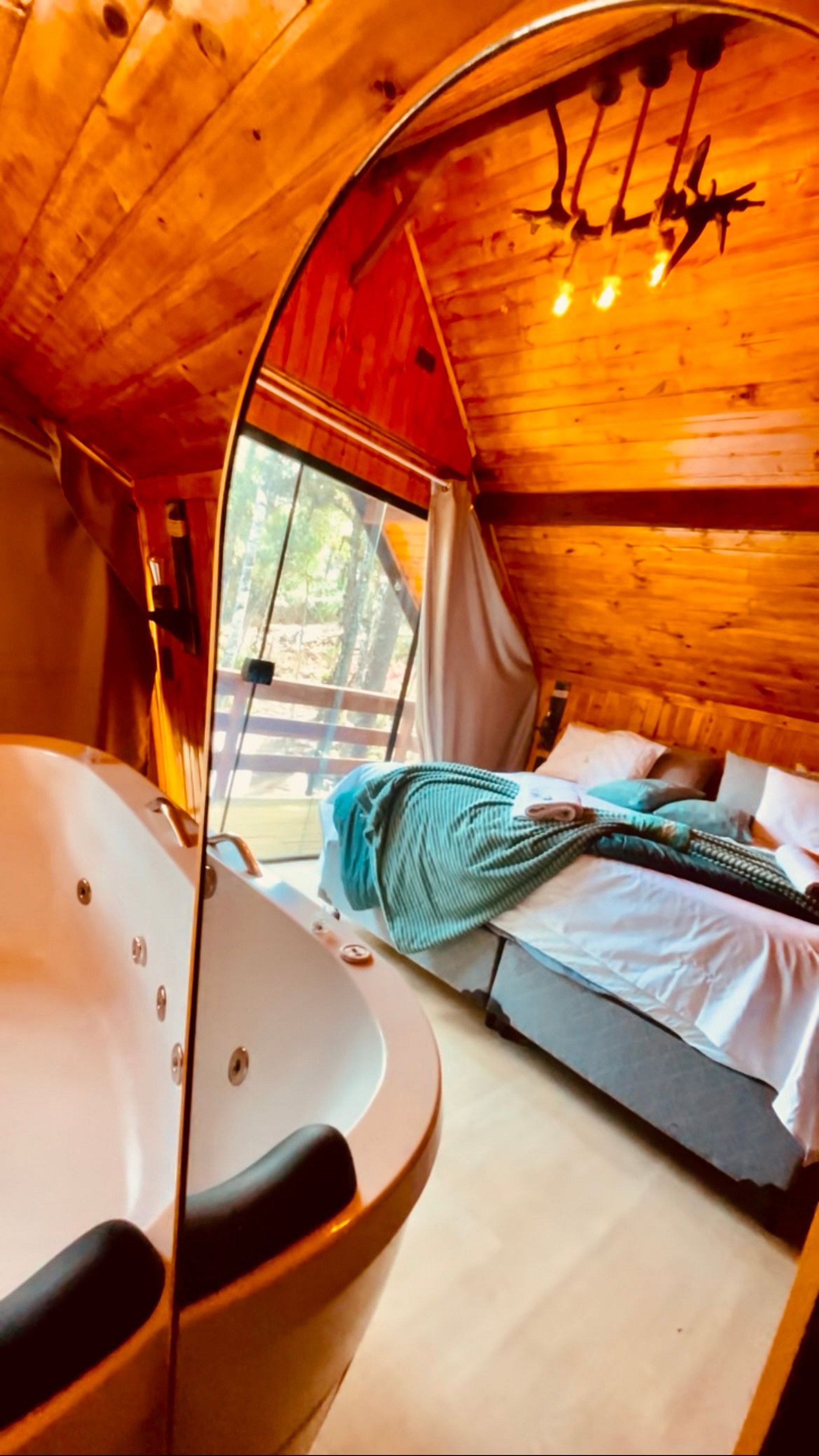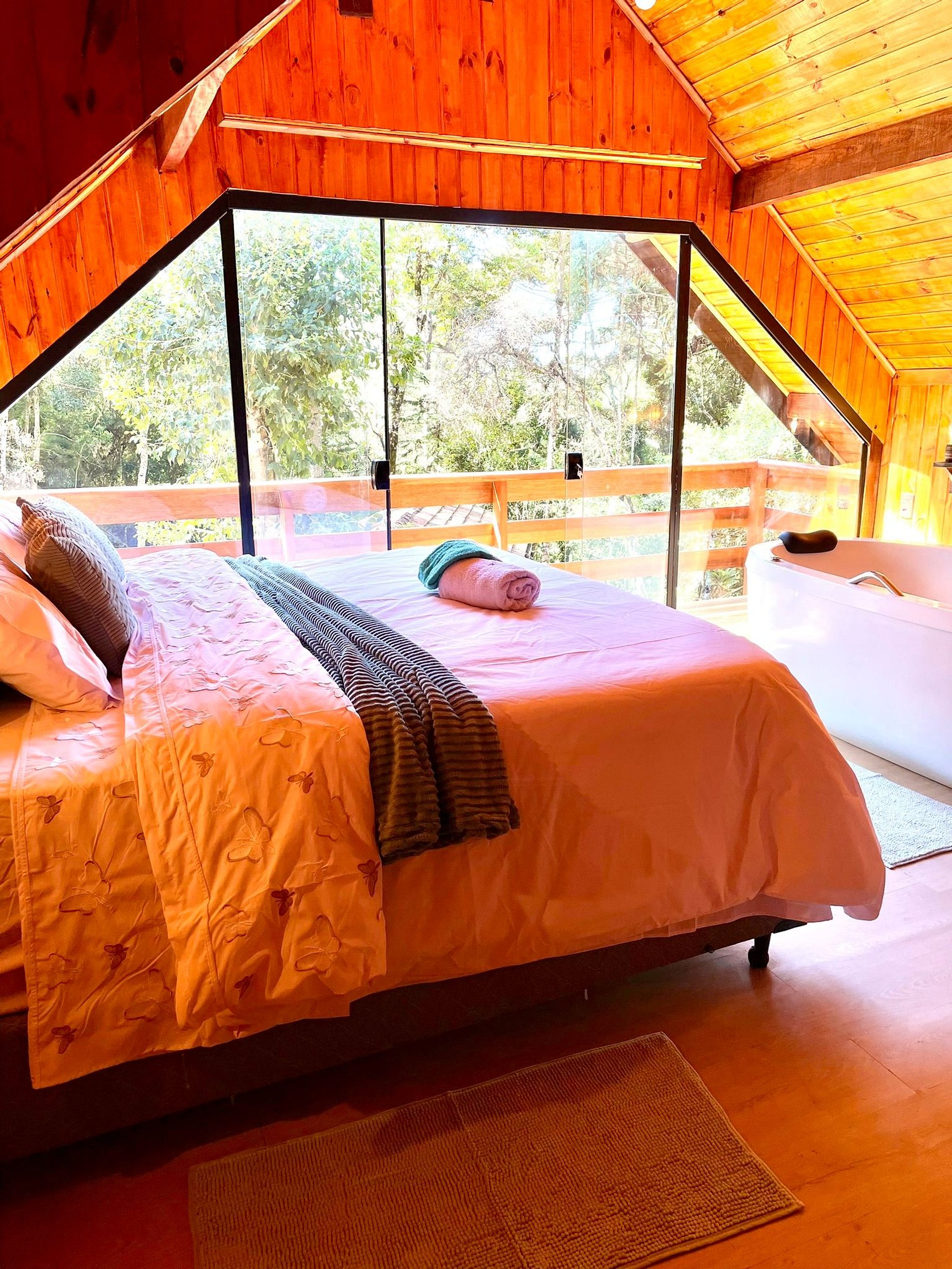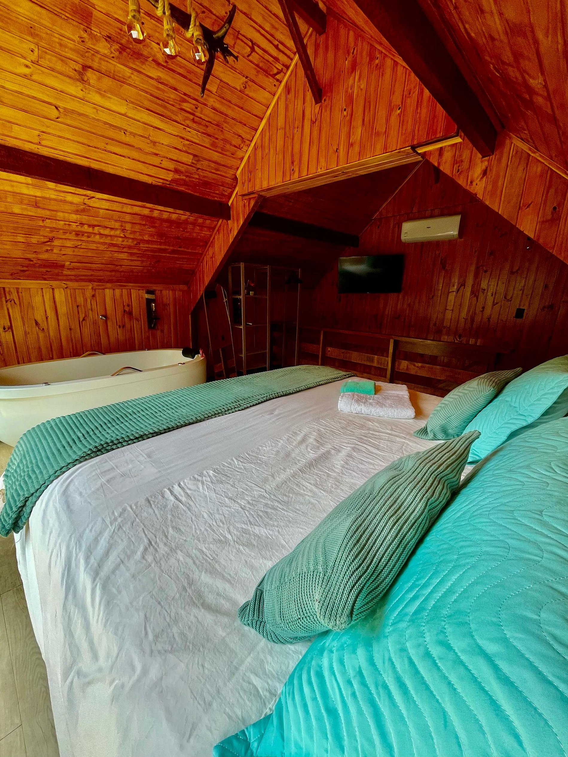 Imagine-se entrando em um chalé de madeira rústico, cuidadosamente decorado para criar uma atmosfera acolhedora e elegante. Repleto de detalhes pensados no seu conforto, o chalé oferece uma banheira de hidromassagem com cromoterapia – perfeita para relaxar após um dia de passeios –, cozinha completa para preparar suas refeições favoritas e dois ambientes espaçosos para garantir o melhor aproveitamento do espaço. O fogo de chão externo é um dos nossos maiores atrativos, ideal para curtir um bom vinho sob o céu estrelado de Campos do Jordão.