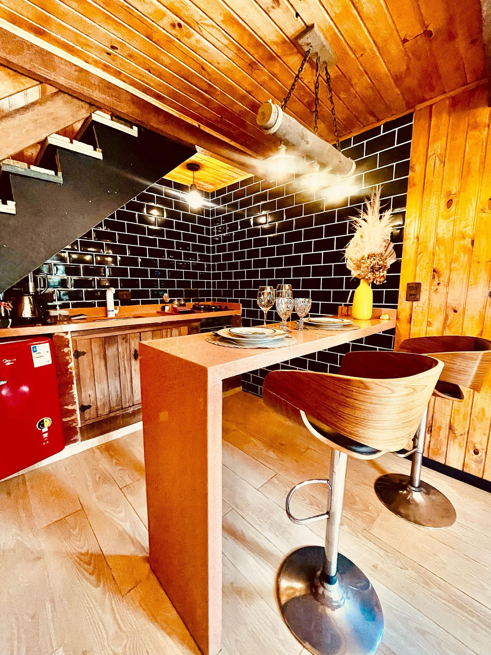 O Chalé Duomo di Milano é um espaço premium em Campos do Jordão, perfeito para momentos memoráveis. Com dois ambientes, no piso inferior oferece cozinha completa, sala charmosa e banheiro. No piso superior, uma cama king com hidromassagem e uma frente toda de vidro revelam uma vista deslumbrante. A decoração elegante combina móveis de madeira e iluminação aconchegante, criando um ambiente sofisticado e acolhedor. Ideal para relaxar e aproveitar o melhor da Serra da Mantiqueira!