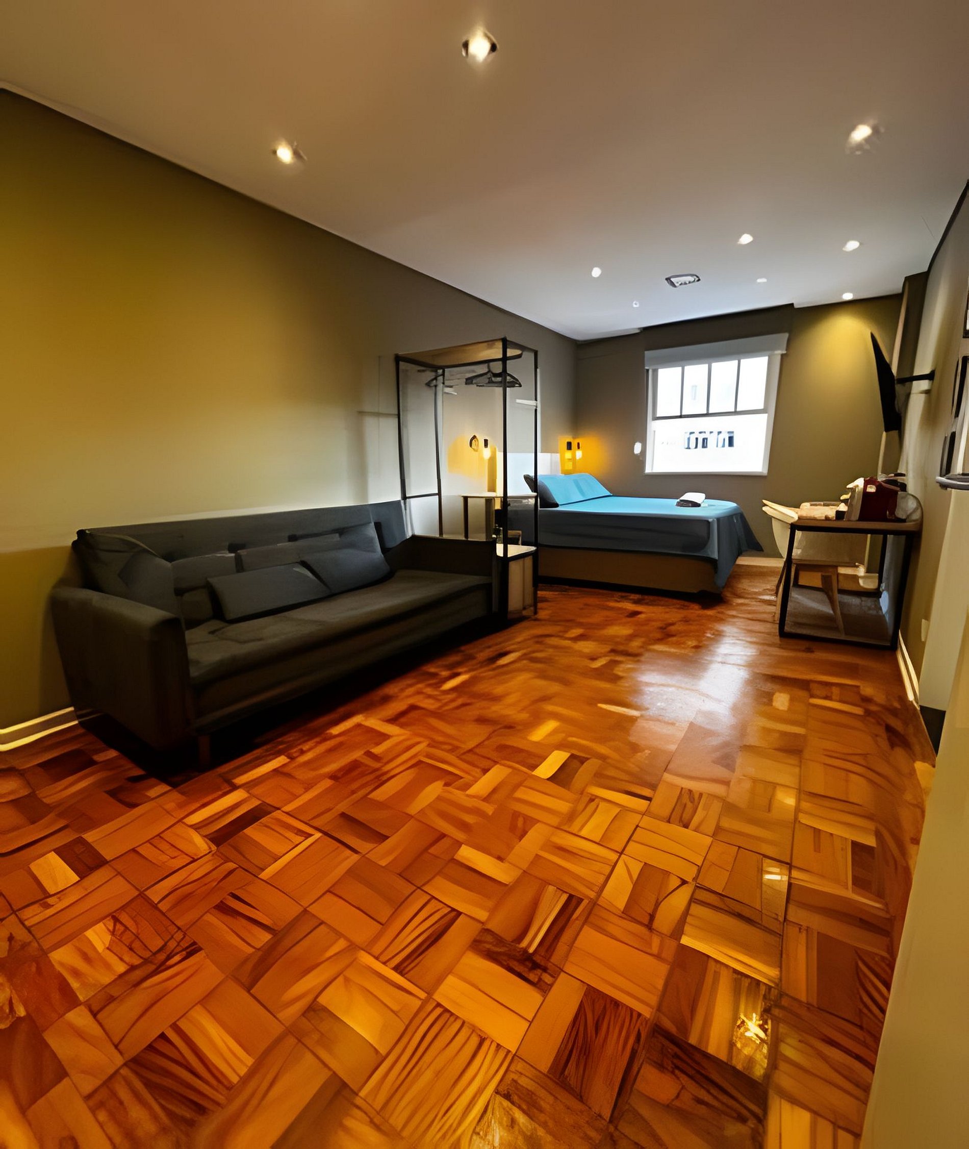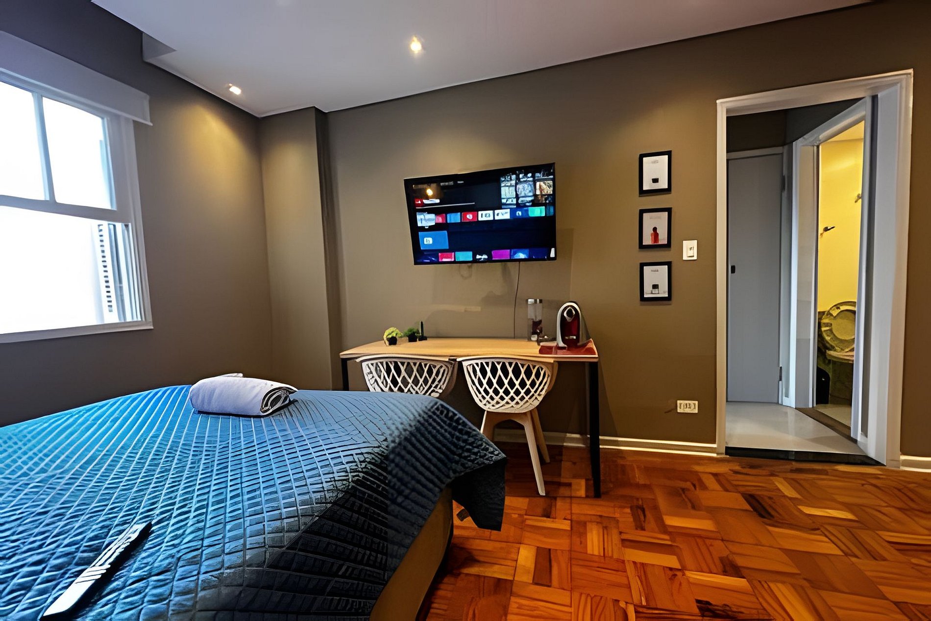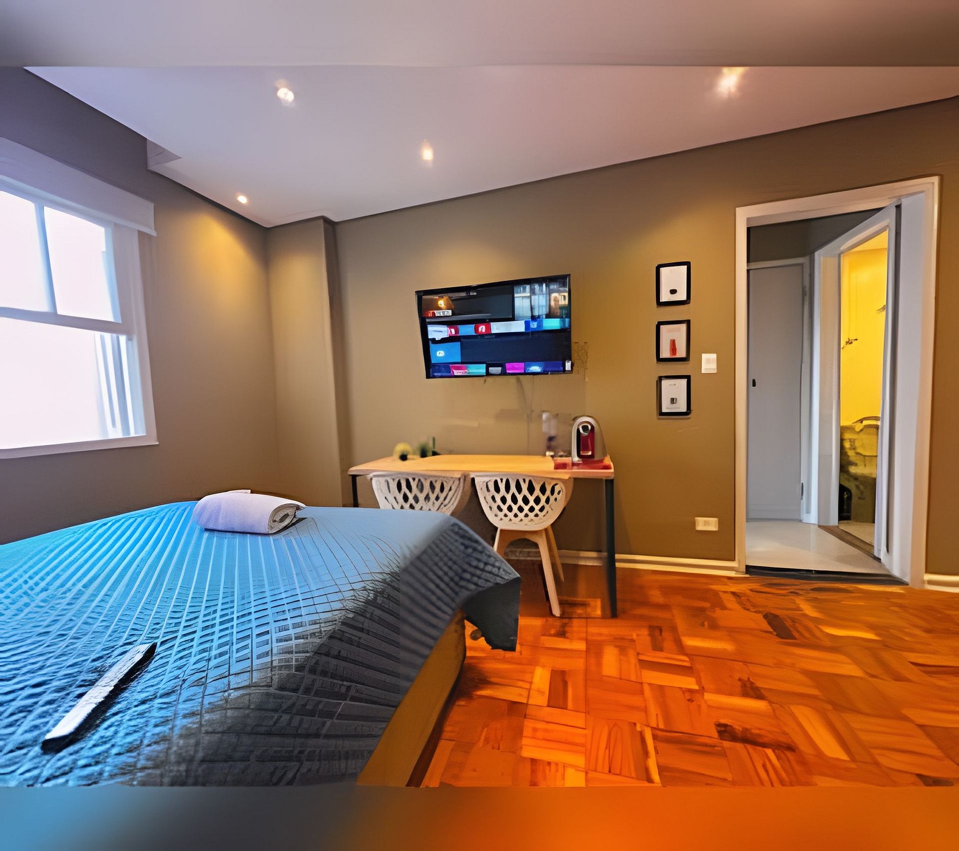 - Ambiente relaxante: Cama confortável, design clean e iluminação acolhedora garantem uma ótima experiência.