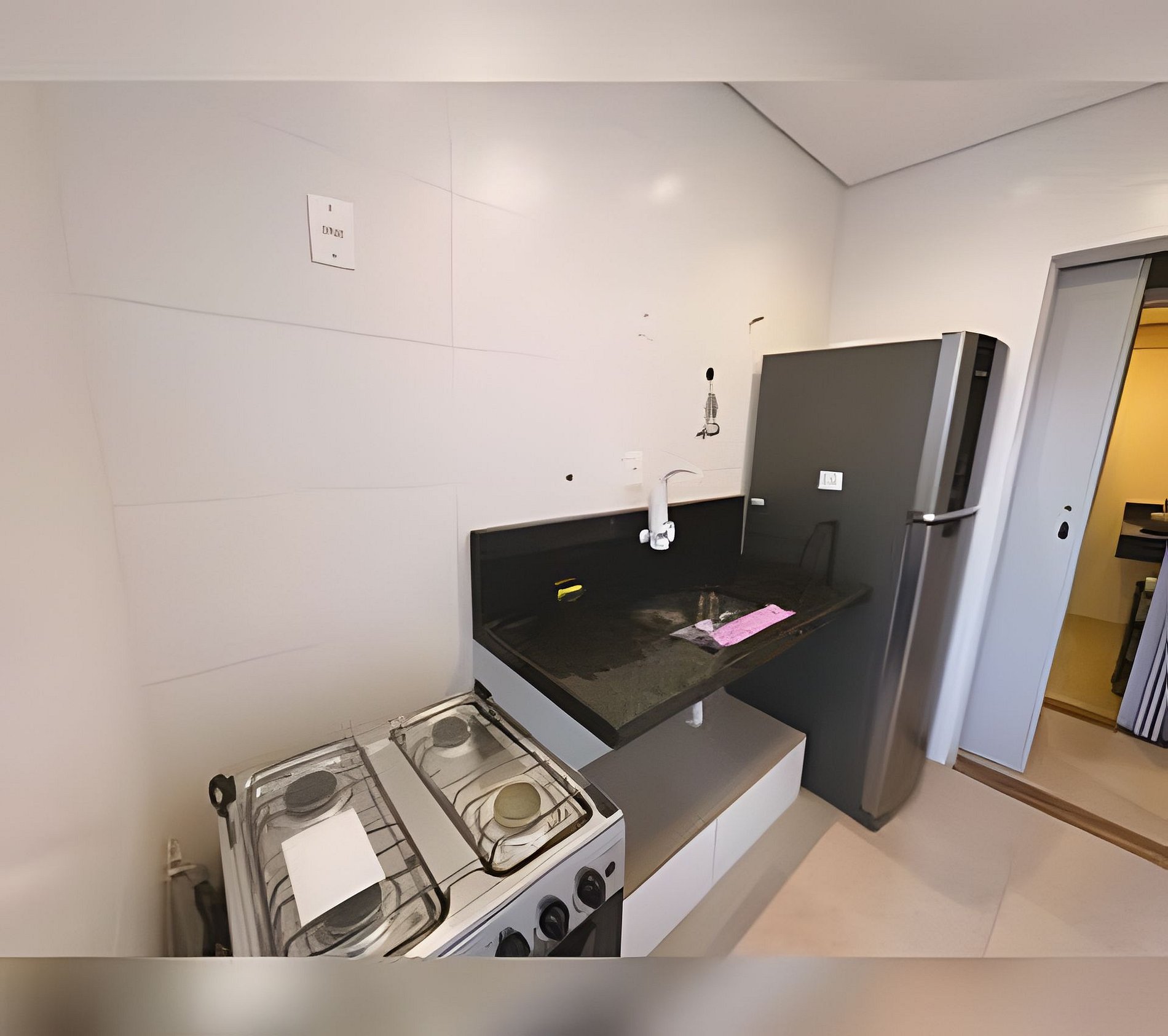 - Cozinha compacta equipada com o necessário para refeições rápidas.
